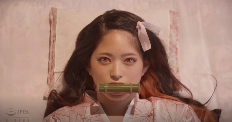 キレイな脚を内股っぽくして悶える姿はアニメを彷彿とさせるし、竹筒を咥えたままオナニーするので、ちょっと苦しそうなところも禰豆子っぽい声が出ててイイ感じです。